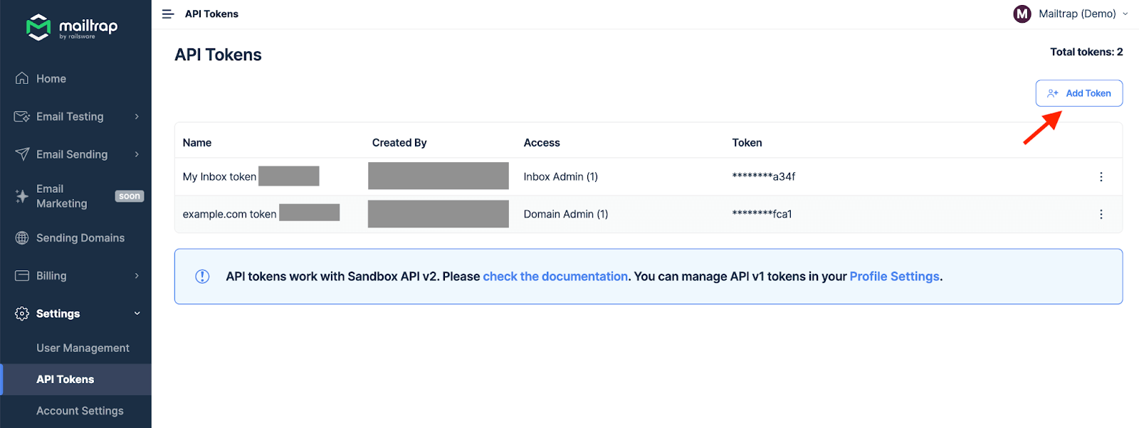 Under Email API settings, create an API token with sending permissions. Store this token securely since it's the authentication key for all your email requests.