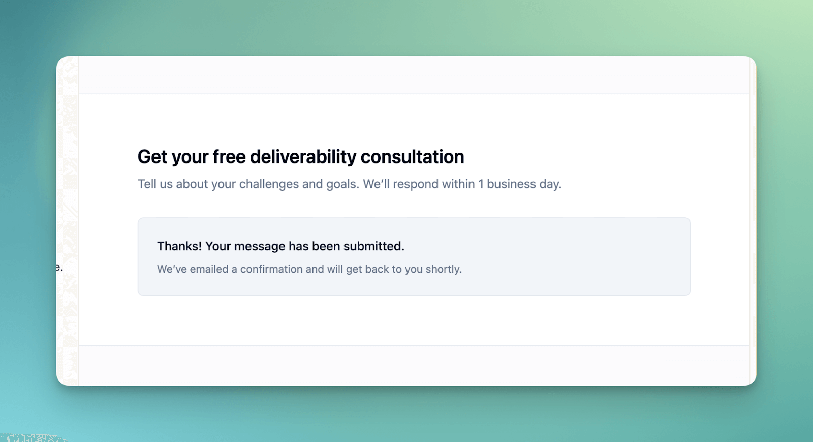 Upon submitting the form, you should see the following message, but keep in mind that it's OK not to work from the start sometimes.